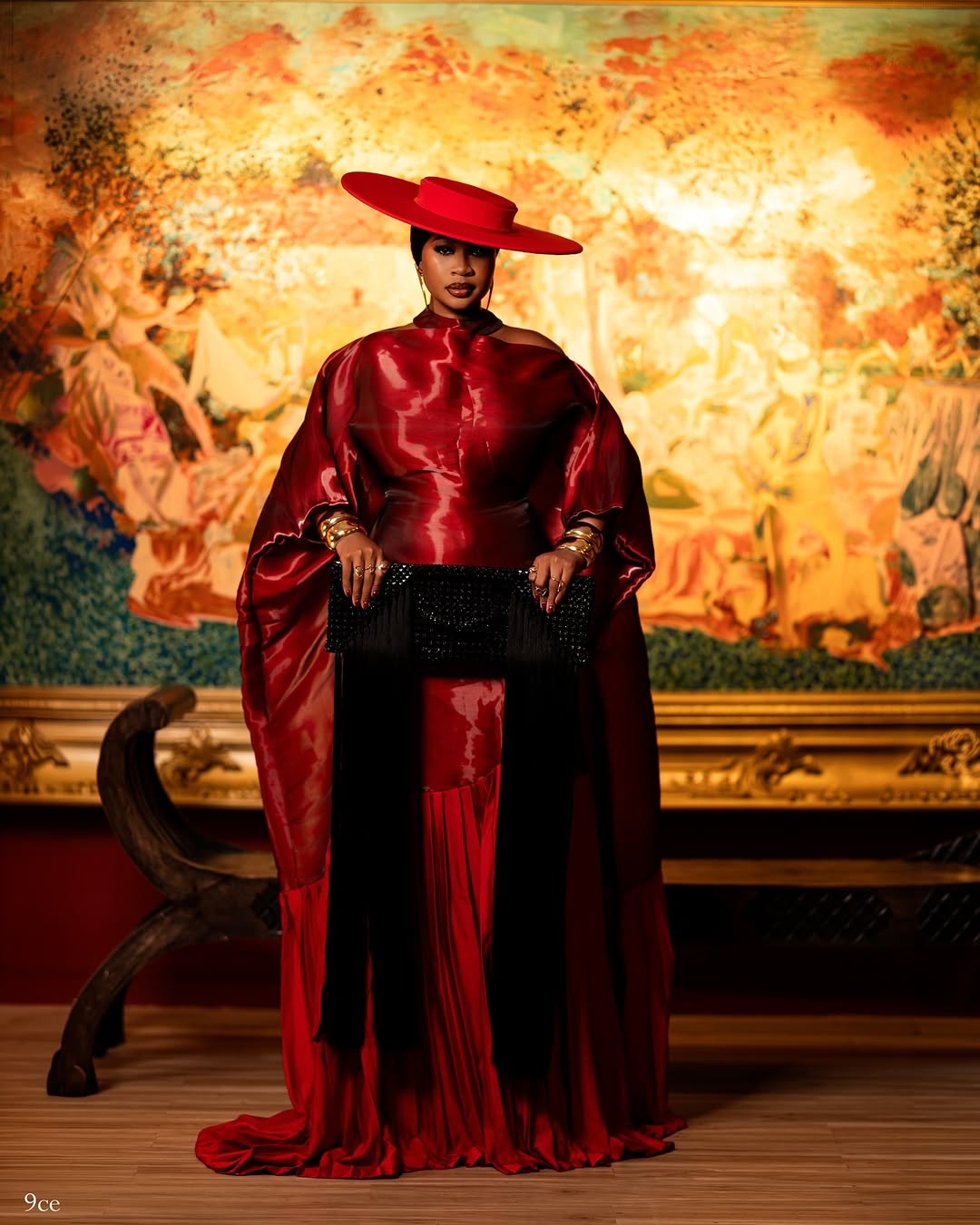 Tiwa Savage wears this look with a quiet authority that pulls you in instantly. The rich wine tone sets a deep, luxurious mood,…