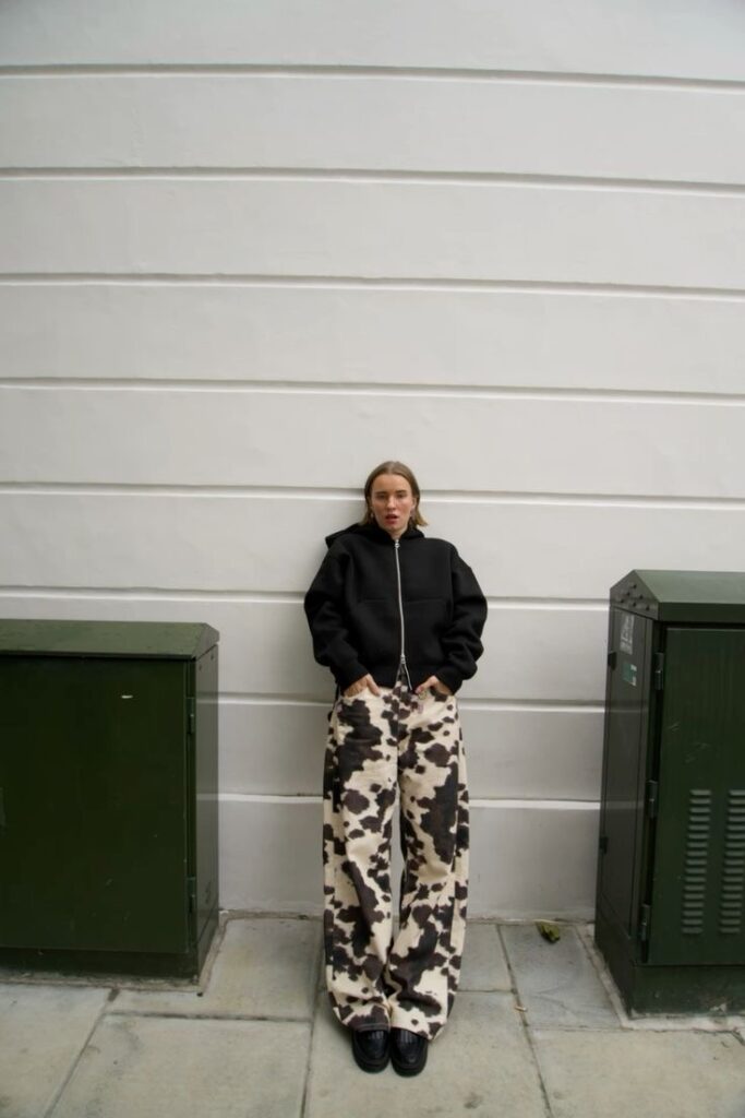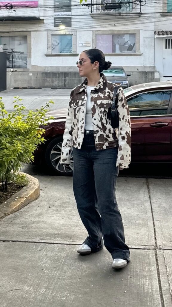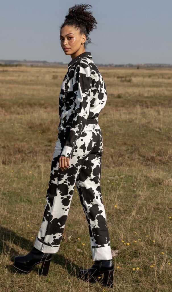 You can go bold with a full cow print outfit from head to toe. You can consider a jacket and pants outfit and keep it oversized to balance the statement print.