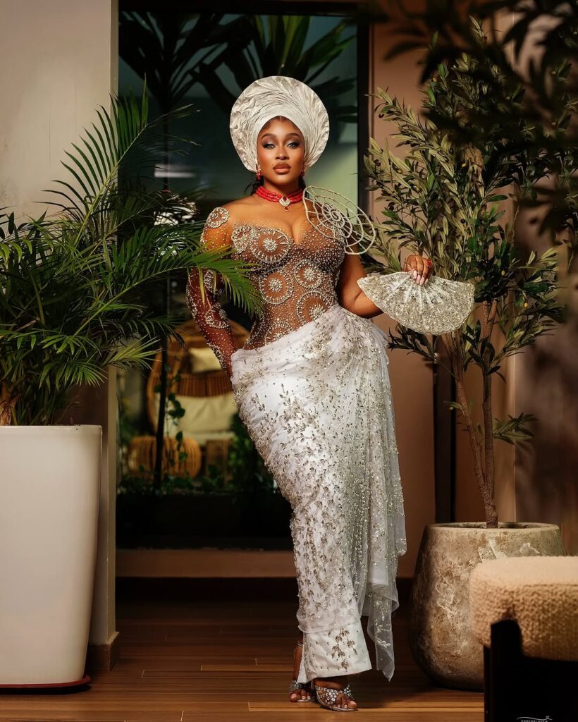 Igbo brides-to-be. If you’re on the lookout for some wedding inspiration which not only incorporates traditional elements but a little extra shine too. You won’t want to go past Uriel’s latest style. She wore an absolutely stunning all-white Igbo outfit which not only exudes class but definitely grabs attention, which is exactly why she’s a popular choice for couples when it comes to wedding inspiration.