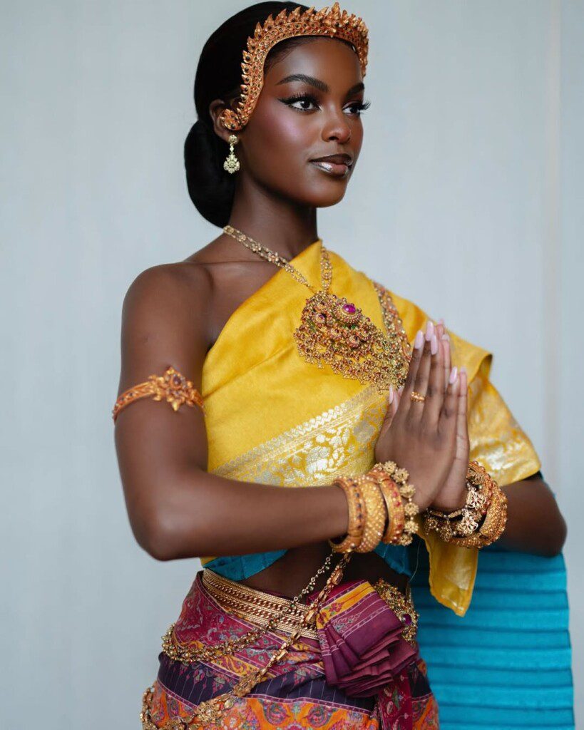 Who goes to Thailand without having a taste of their rich tradition? She wore a traditional Thai outfit from Phusa Phalaiyang, a renowned fashion brand in Thailand. Her stunning looks have further solidified her reputation not just as a beauty queen but also as a global fashion muse.