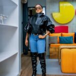 It’s all about the breathtaking mesh dress, which has been designed by House Of Fify NG. It features a delicate neckline with feathers and floral patterns, giving it an ethereal effect. What’s really taking it to new heights is the star-like beads spread all over its sleeves and bodice, with just enough shine to accentuate it properly without overpowering it.