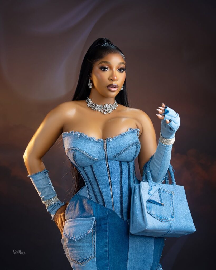 Who said denim has to stay simple when it can look this rich and striking? This outfit takes everything you know about denim and flips it into a full glam statement.