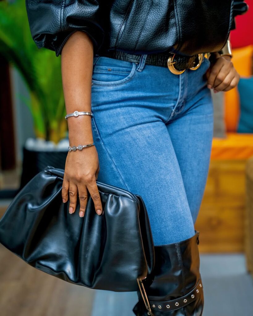 What makes this combination stand out is how smooth it feels. The richness of the leather plays against the simplicity of the denim, creating a contrast that looks clean and very stylish. It is a mix that feels modern, confident, and easy to wear at the same time.