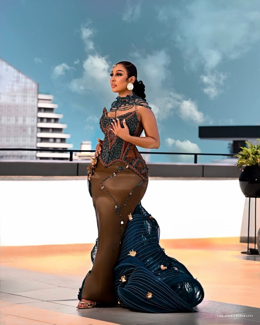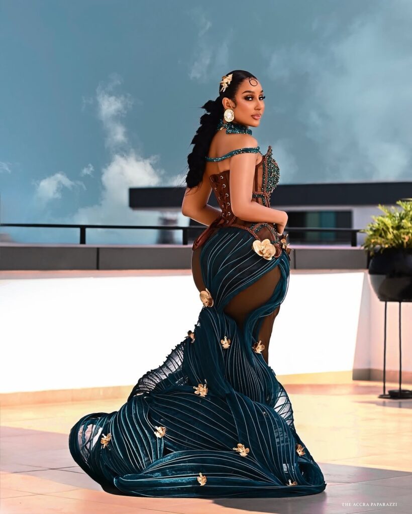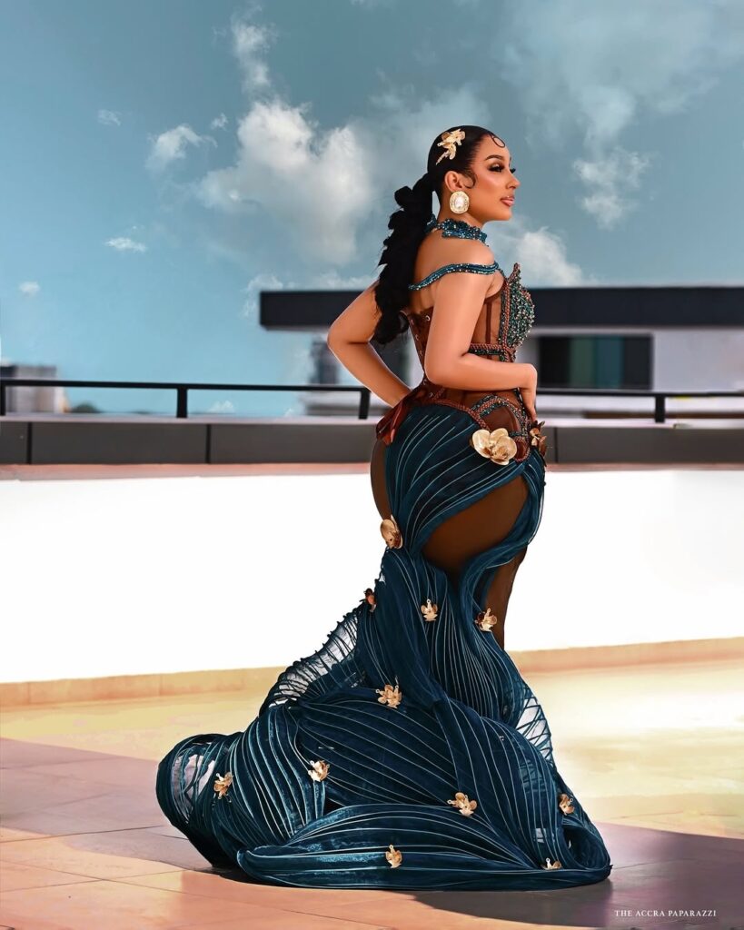 Then comes the dramatic flow at the back of the gown that changes everything. It adds that red carpet drama and gives the gown a strong statement finish. You may not wear a full gown with dramatic flow at the back for every event, but you can take inspiration from it by choosing gowns with bold details, layers, or unique textures that stand out.