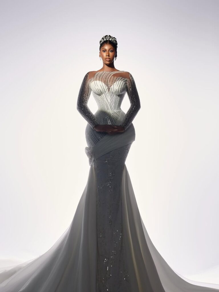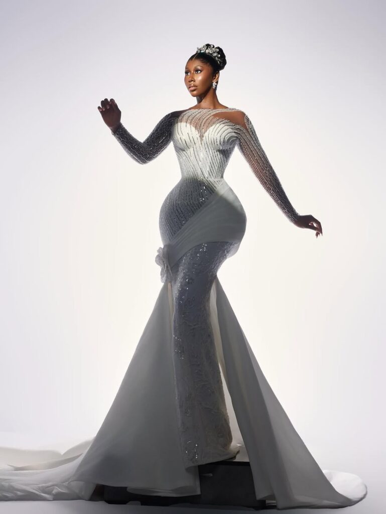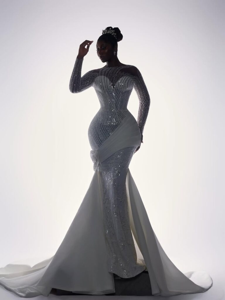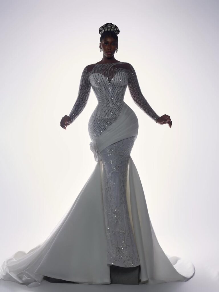 With regard to bridal fashion, creating the ideal fusion between timeless elegance and contemporary style is an art form. Recently we came across this breathtaking white wedding dress that features Nelly Mbonu.
