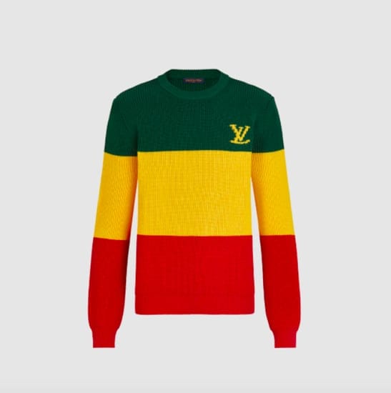 Twitter users were quick to notice that the sweater from Louis Vuitton resembles the Rastafarian flag, a religious movement with roots in Jamaica, as opposed to the official Jamaican flag.