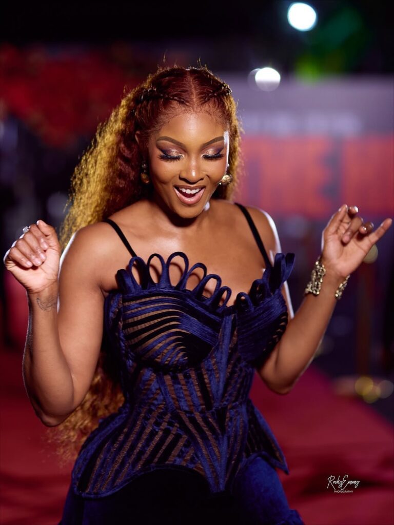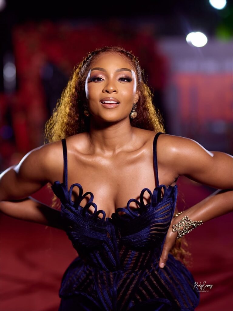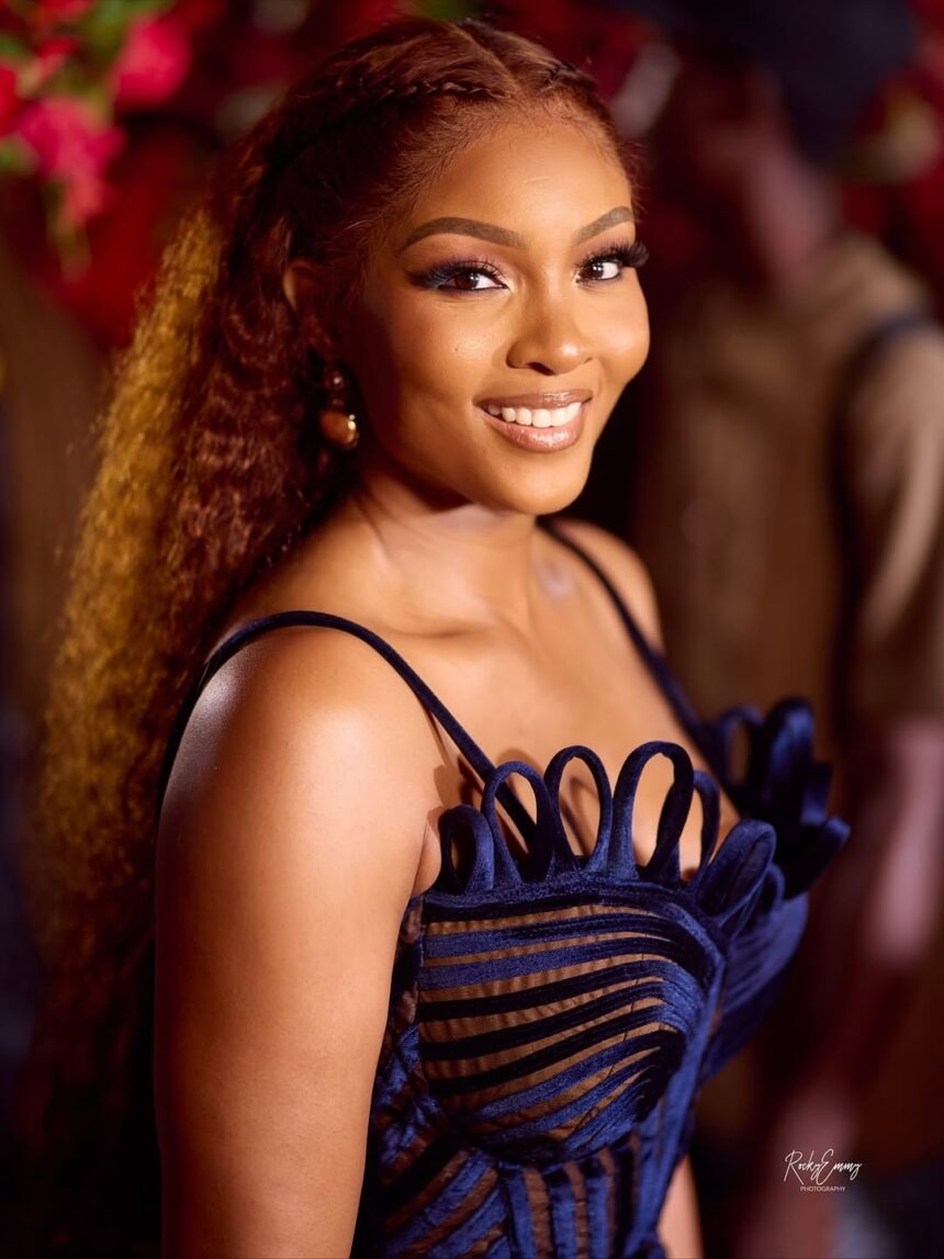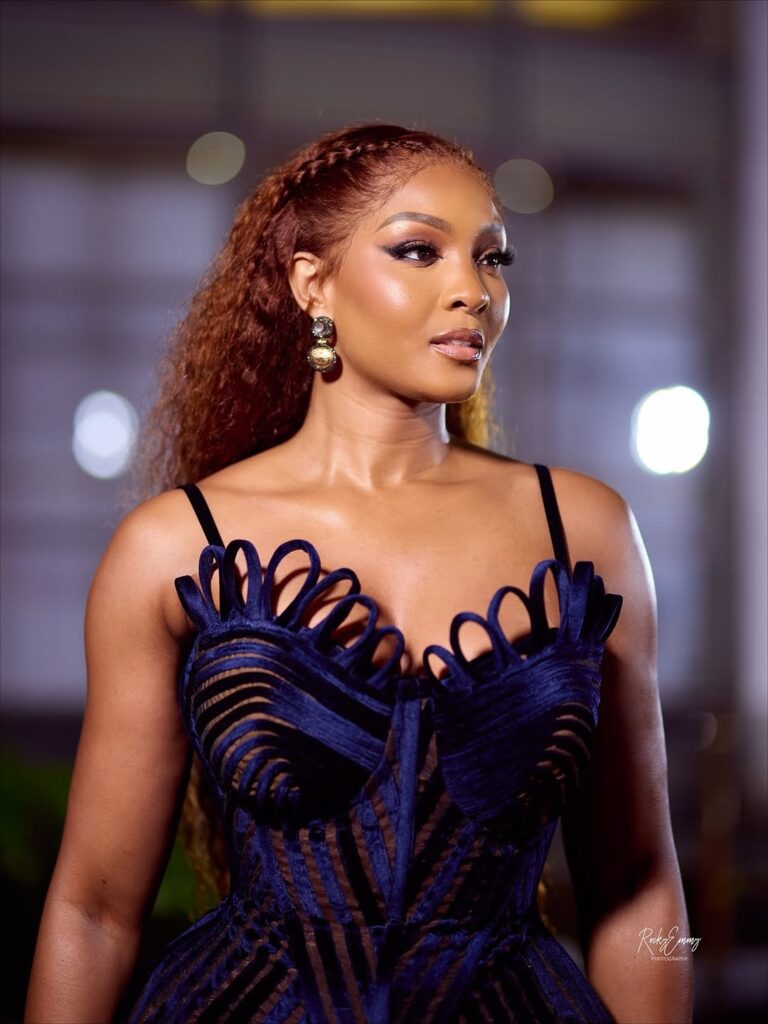Look at How Osas Ighodaro Makes a Grand Entrance in This Stunning Deep Navy Velvet Look