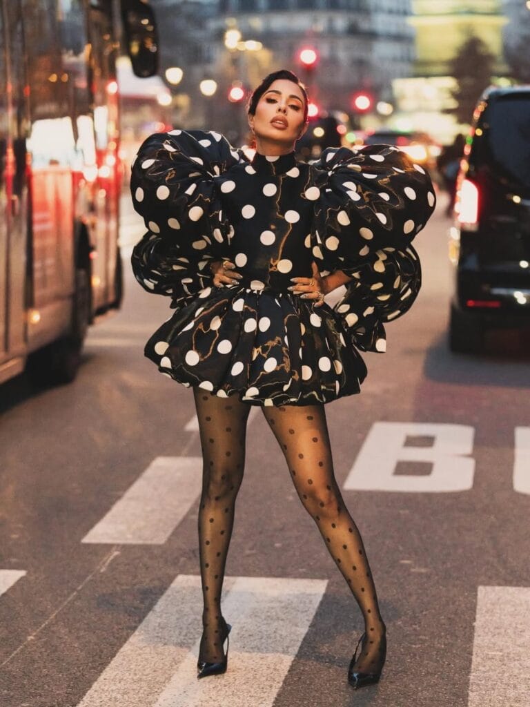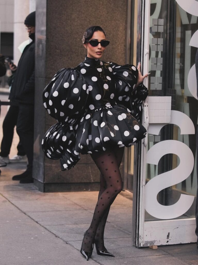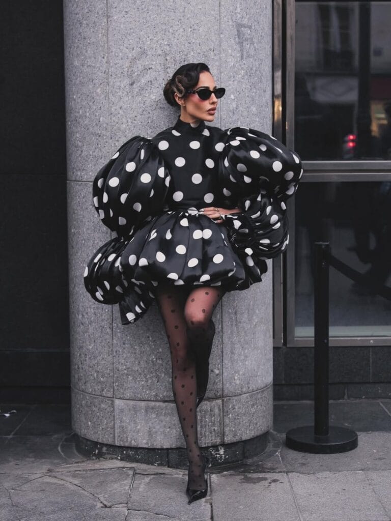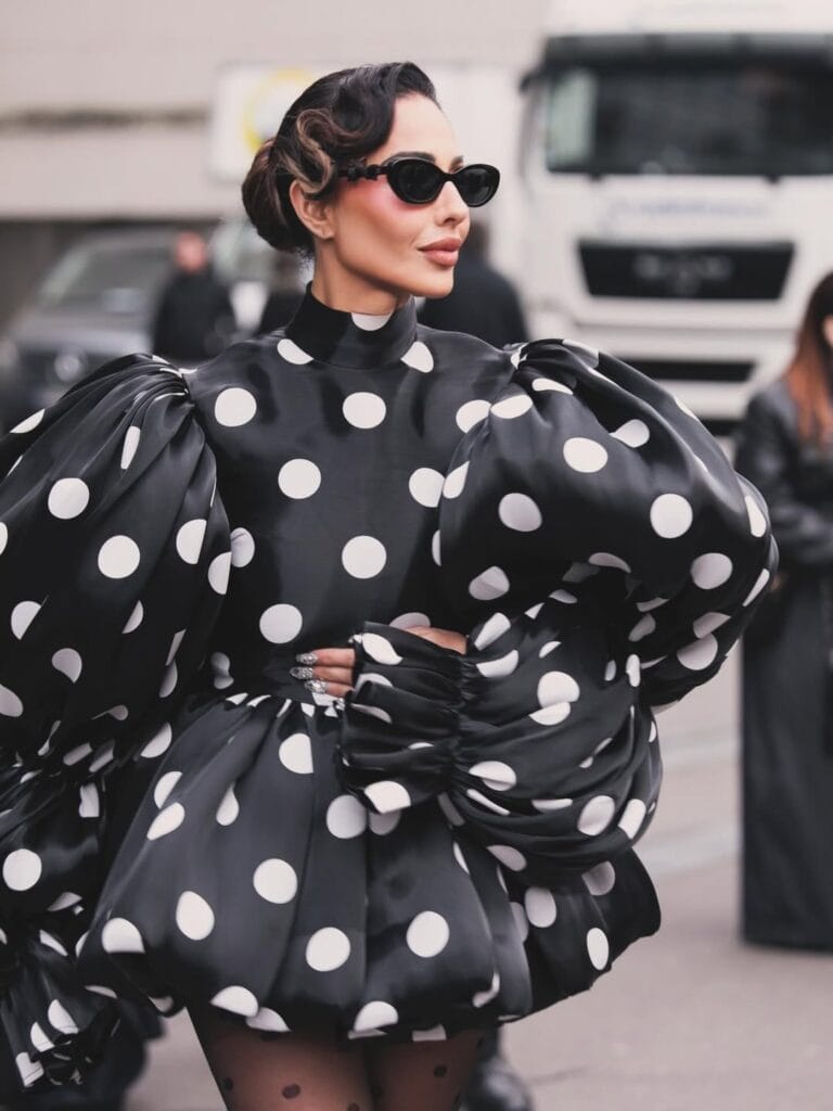 It proves that polka dots can be bold, glam and high fashion when styled the right way. Big sleeves, strong pose, and zero fear. That is how you wear polka dots now.