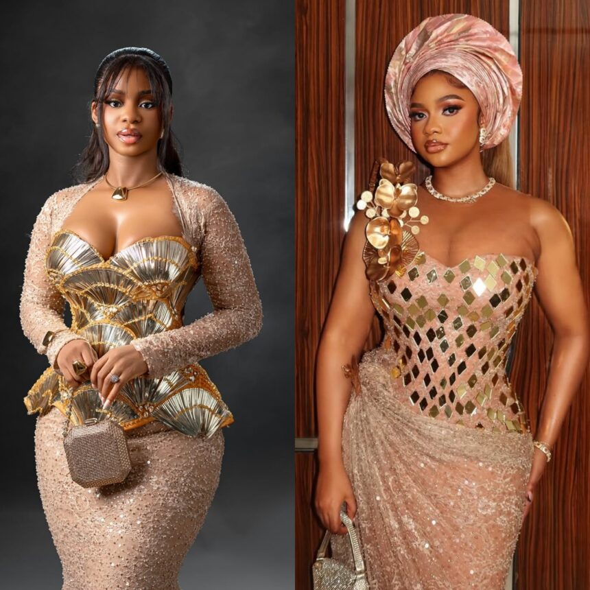 Victoria Onyenwere came through with a look that celebrates culture in a modern way. Her corset top is detailed with shiny patterns that reflect light beautifully, making her stand out with every movement. The draped wrapper around her waist falls smoothly, giving her that graceful owambe look that always feels timeless. Her gele is bold and well styled, adding height and a strong presence. Her accessories are simple but well placed, giving her just enough shine to complete the look.