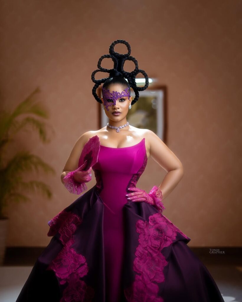 The moment you see this look, you know it belongs on a red carpet. Shine Rosman showed up in a movie premiere worthy outfit that feels bold, rich, and deeply African in spirit.