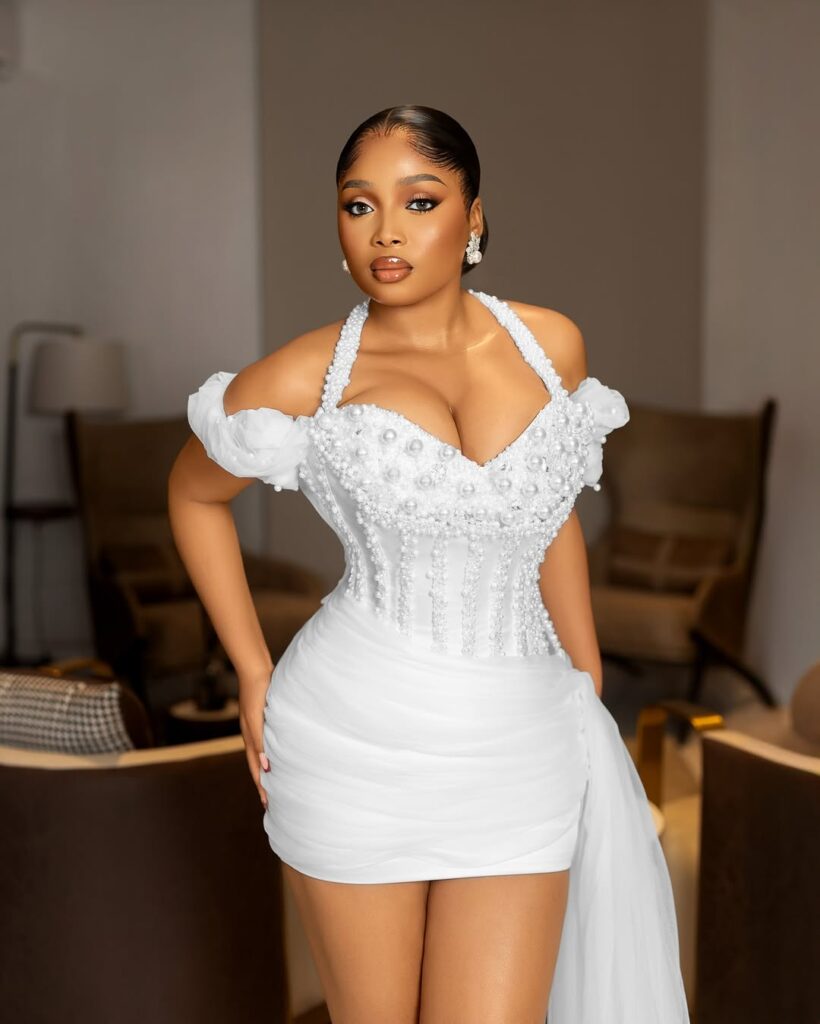 And the makeup from Lucious E Beauty, which boosts the glamour element in all the right ways. Imagine flawless skin, dramatic eyes, and lips that pop, all of which give you a luminous look that matches the shine of the dress. Honestly it is the kind of glow up where everybody wants to know your secret.