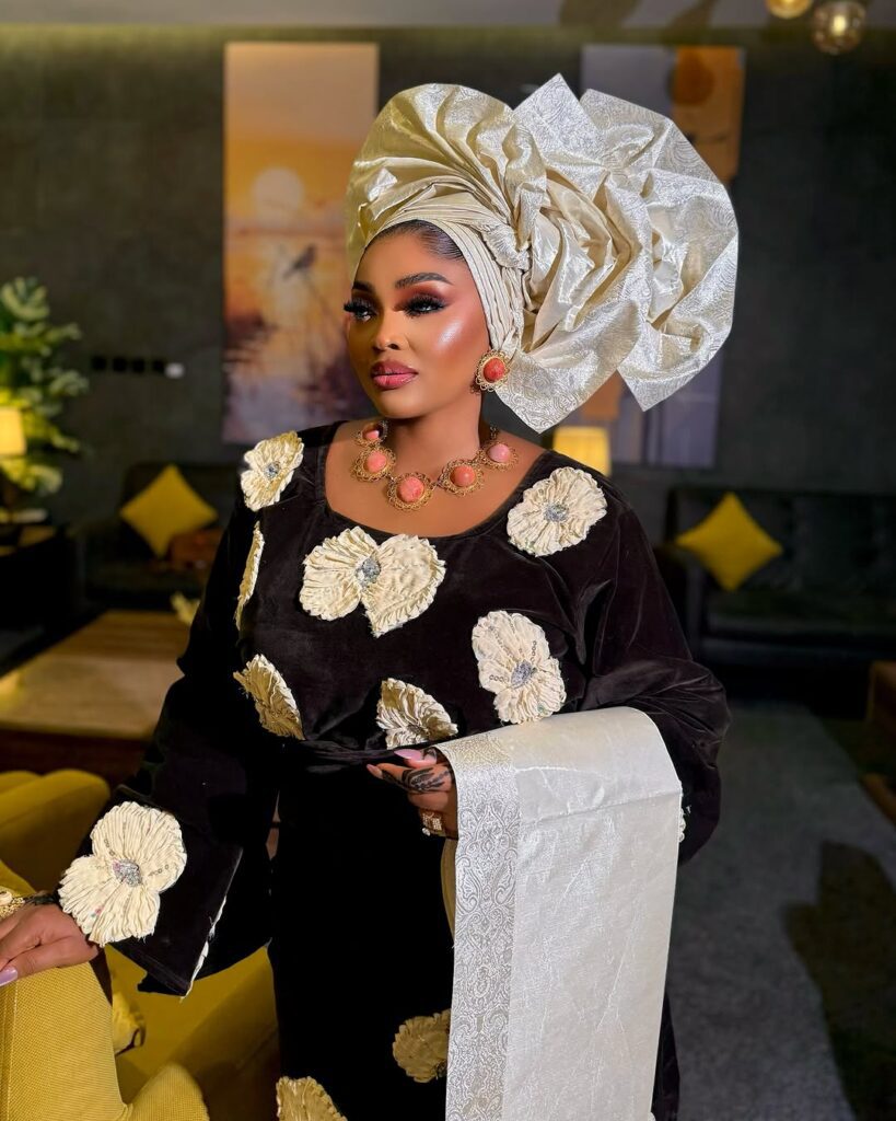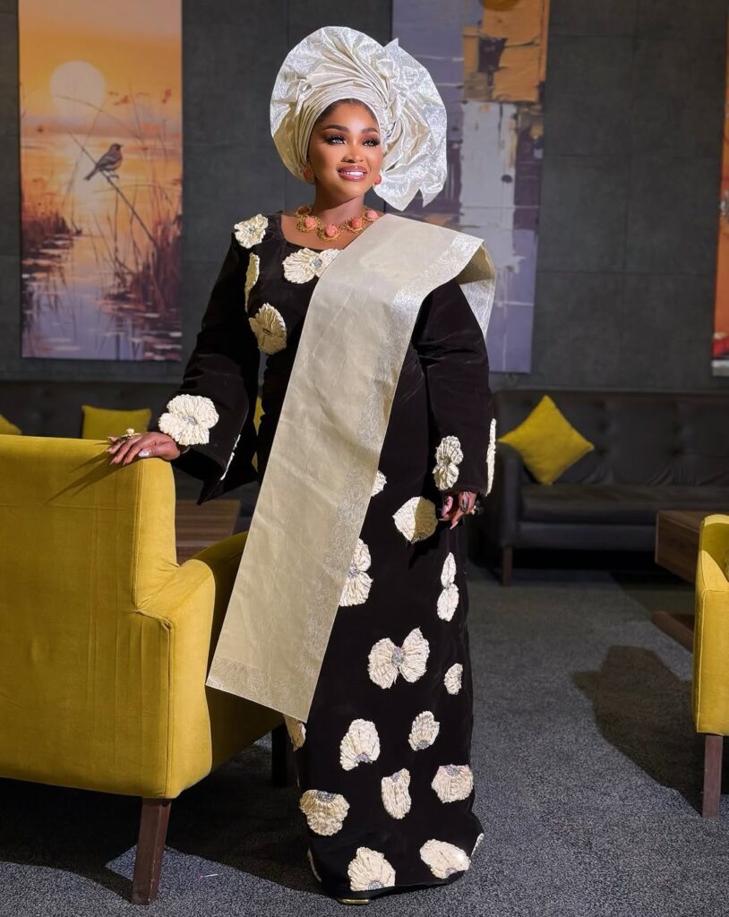 Mercy Aigbe is serving full rich aunty Owambe energy in a stunning deep black velvet bubu, and every single detail on this outfit is doing serious work.