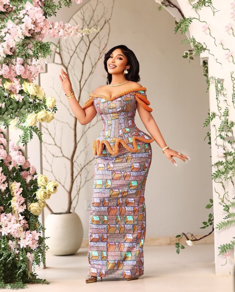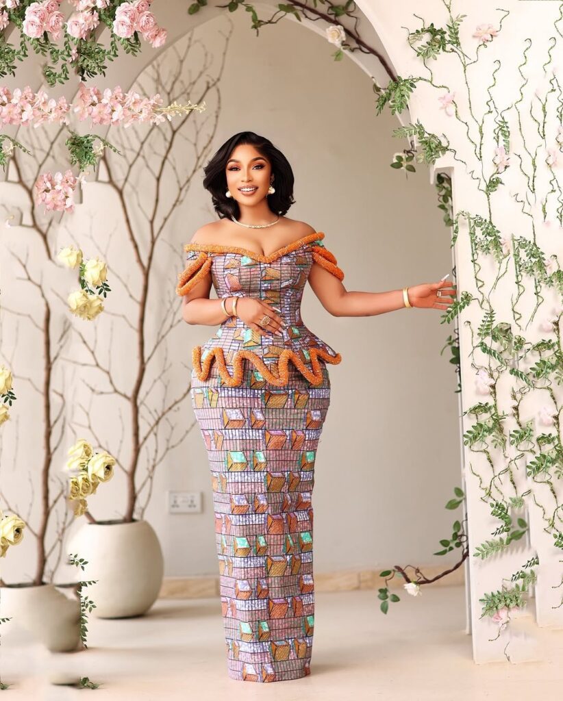 Tonto Dikeh really knows how to make an entrance. In this beautiful photo, the actress and media personality is wearing a stunning Ankara dress that’s sure to turn heads anywhere she goes.