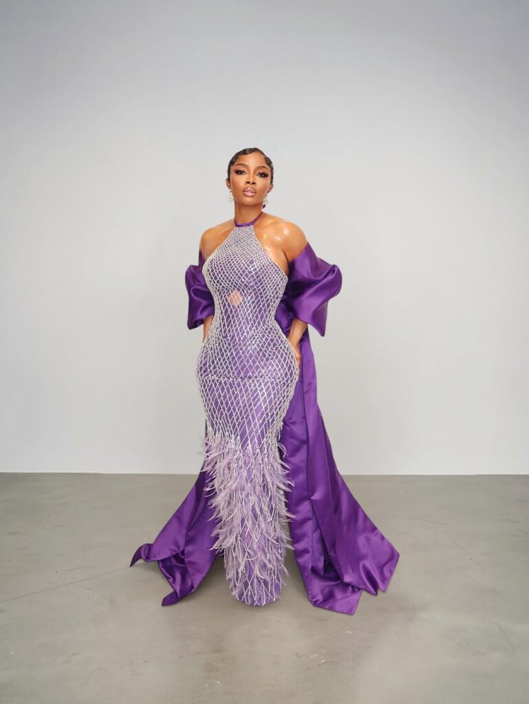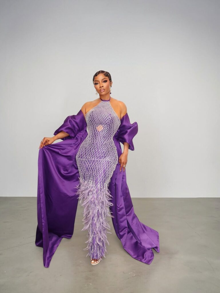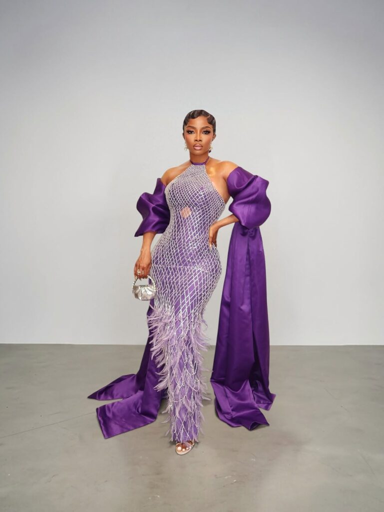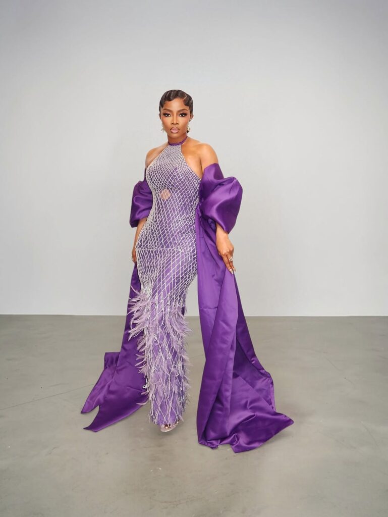 At the premiere of Return of Arinzo, Toke Makinwa did not just show up, she gave a full moment you could feel. You know that outfit that makes you stop and look twice? This is it. The lilac dress fits so clean and smooth, it almost feels like second skin. Then that rich purple satin drapes down the arms, flowing behind her like she owns the whole carpet. It is soft, but it carries power.