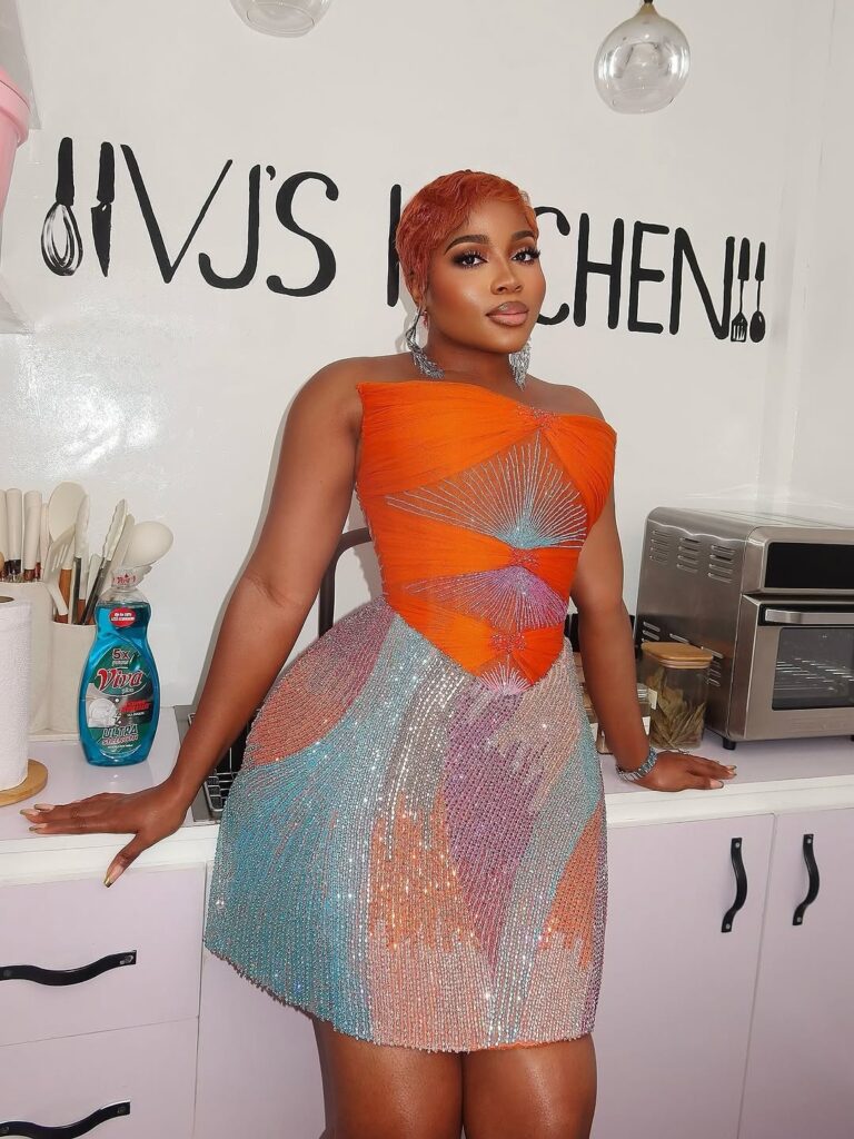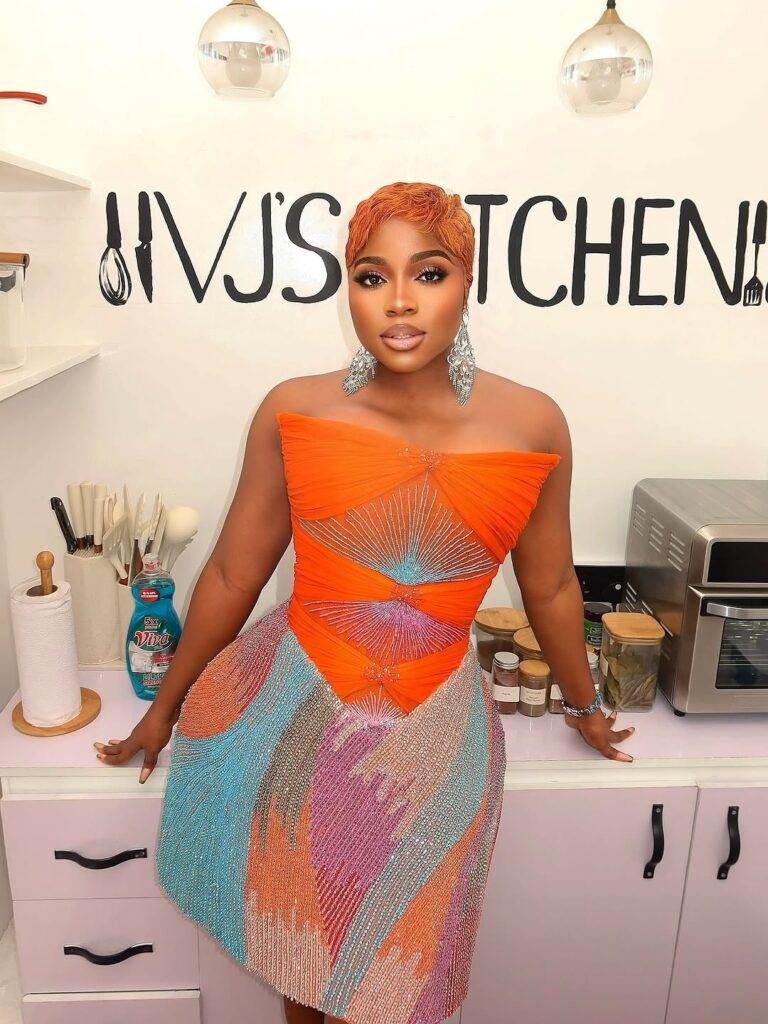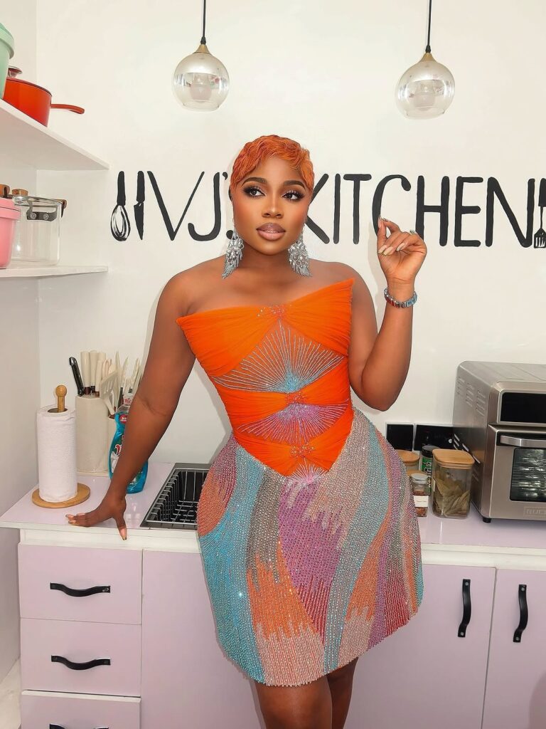 Veekee James recently lit up Instagram with a photo that we are obsessed with. She posted herself in the middle of a kitchen, looking like she just stepped out of a fashion show, with the playful caption “Tell me why the food no go sweet”. Infact, with this much style, even a simple meal could taste like luxury.